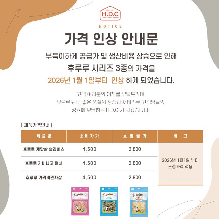 건강한 원료로만 만든 H.D.C의 새로운 프리미엄 간식을 만나보세요.